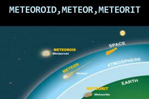 Meteoroid adalah batu-batu angkasa berukuran relatif kecil yang melayang-layang bebas di angkasa tanpa memiliki lintasan yang beraturan sedangkan meteor merupakan meteoroid yang jatuh dan masuk ke dalam atmosfer bumi. Meteor merupakan asteroid kecil dari luar angkasa yang tertarik oleh gravitasi Bumi ketika memasuki atmosfer bumi terjadi gesekan udara di lapisan ionosfer menyebabkan meteor panas dan terbakar. Perbedaan meteoroid meteor dan meteorit.